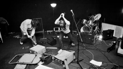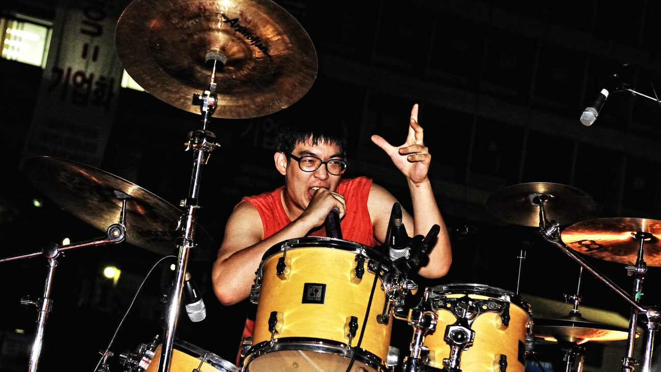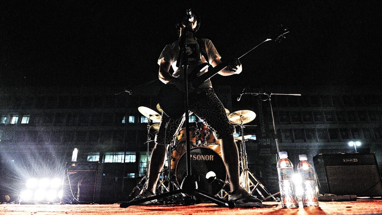 “Whereas other bands smash up expensive guitars, we use rubbish”, says one of the members of controversial duo Bamseom Pirates while picking up an old printer lying amongst the junk in an abandoned university building. They prefer to play here rather than in Seoul’s hip concert venues. With heavy irony, they announce their ‘relaxing’ music: a blast of noise called grindcore. They play bass and drums, but use also anything they can get their hands on to make music. Their angry punk attitude is aimed against the established order in South Korea. Many of their numbers have led to controversy and rows, which they warmly welcome. In his debut Non-fiction Diary, filmmaker Jung expanded an infamous real-life murder from the 1990s into an analysis of stumbling faith in progress in Korea. His second film starts as a noisy musical portrait, growing into a statement on youthful resistance against the capitalist powers that be.