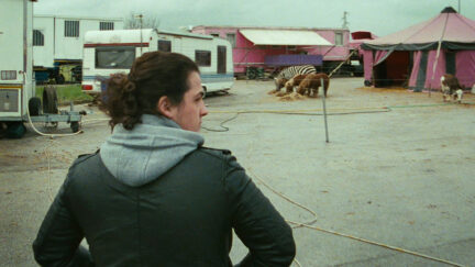 Directors Tizza Covi and Rainer Frimmel have dedicated their latest film to “everyone who has lost his job owing to the digitisation of cinema.” This has nothing – and also everything – to do with the film’s story, which is about dissatisfied lion tamer Tairo who takes the loss of his talisman – a horseshoe – as a reason to set off on a journey through a drab, grey Italy. Here too, we see how ‘progress’ is having devastating consequences all over. Tairo is caught up in an economic system that is pushing him to the margins. Superstition gives him hope of escaping this. He travels a rainy Italy looking for Arthur Robin, the former Mister Universe who once formed the horseshoe he has lost. Along the way, he meets old friends and members of his family, who show us a cross-section of a subculture surviving on the cusp of poverty. The result is a highly humane portrait of the circus life Covi and Frimmel have been involved with in the past, with real circus artists playing fictionalised versions of themselves.
