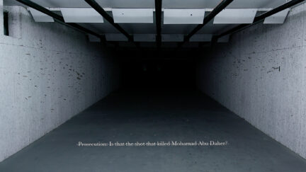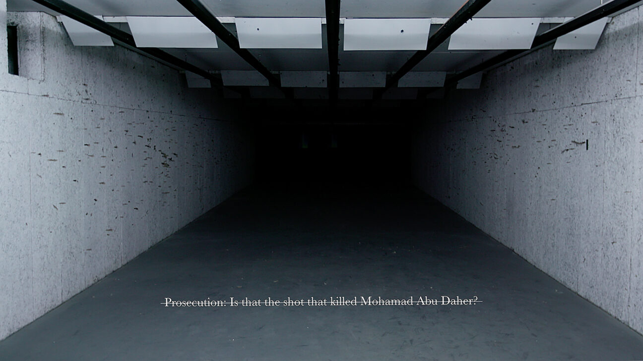 May 2014: two unarmed Palestinian teens are killed by Israeli soldiers on the West Bank. Abu Hamdan made an audio analysis to ascertain whether rubber or live bullets were used. The film centres on the gunfire, yet no shots are heard. Rubber Coated Steel does not preside over the voices of the victims but seeks to amplify their silence, questioning the ways in which rights are being heard today.