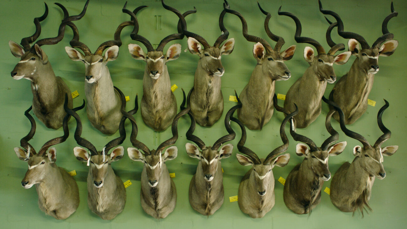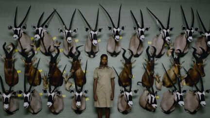 In the documentary Safari, Ulrich Seidl, Austrian chronicler of European social unease, shows Western recreational hunting of African wildlife. Seidl, known from the Paradise feature trilogy (2012-2013), has a style that involves tight frames and symmetrical visual compositions. He sets off with German and Austrian holiday hunters (including the Ellinger married couple from his documentary In the Basement, 2014), who take professional guides on their expensive hunting holidays, killing impala, zebra and giraffe from a great distance. But Seidl is primarily interested in the motives of the hunters (who proudly get their photo taken with each dead animal), such as the family of four, all of whom could take a pot shot. Whereas the protagonists in Seidl’s documentary Animal Love (1995) embraced animals, the hunters’ vocabulary keeps animals at an emotional distance describing them as “pieces” (Stücken). In neocolonial contrast to the whites’ wealth are the poor black labourers who cut the enormous giraffe into pieces in an abattoir.