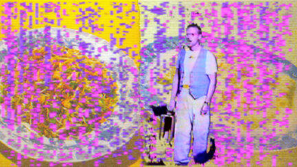 A glitched-out experiment that combines shortwave radio clips from 1985, video recorded on a Fisher-Price PXL-2000, VHS footage from Toronto Gay Men’s Chorus ‘Forte’, and audio drawn from a found English-language travel phrases CD. (Video Out Distribution)