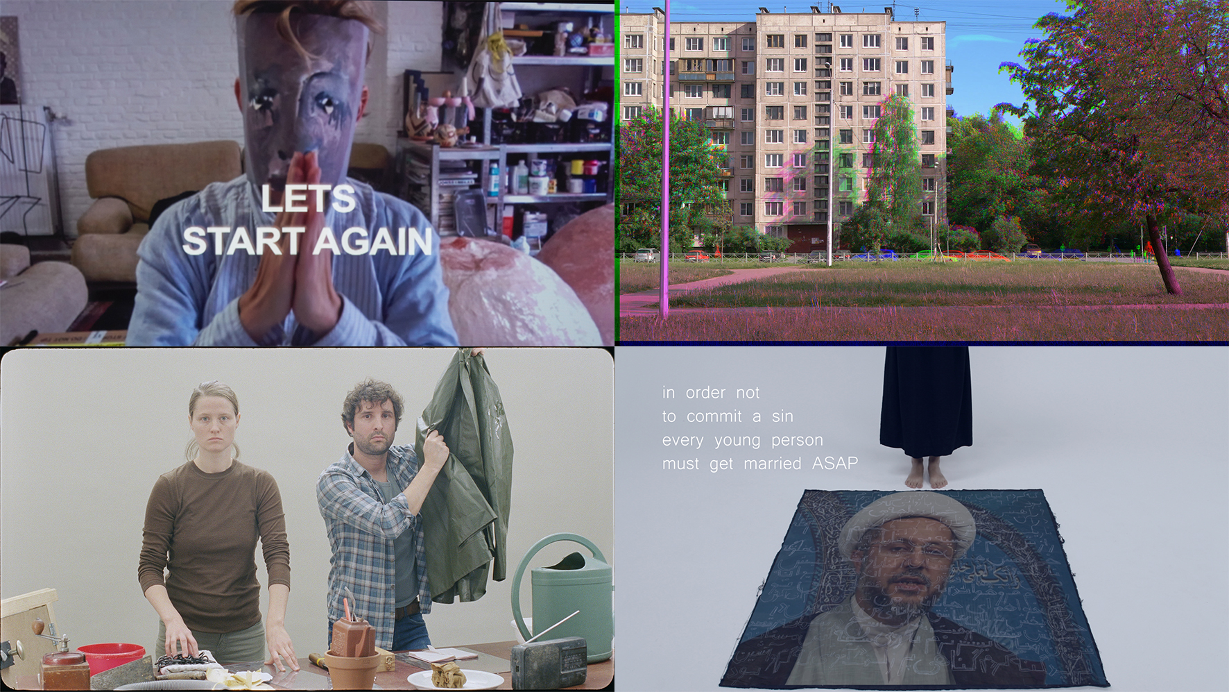 Fragments of Forough Farrokhzad’s poem Sin are read out, juxtaposed with clergy advising women on how to control their lust in Maryam Tafakory’s -