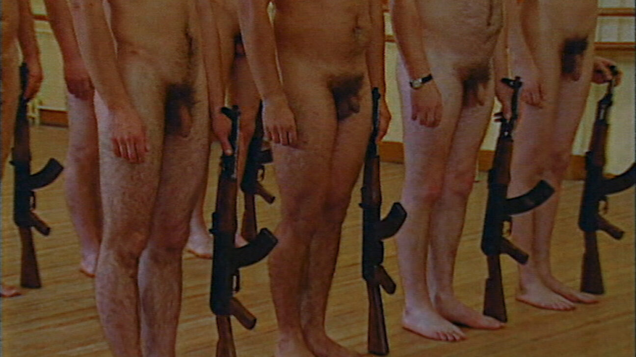 In this film, Żmijewski – literally – strips patterns of behaviour and rituals. We see soldiers present arms and march: the first time clo