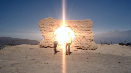 An elderly comedian is buried up to his neck in the Mexican desert. A bitter young woman threatens to pulp his head with a nail bat; the only thing that can stall her are his stories of a mythical threshold behind which lies the absolute truth. Is she in his dream or he in hers? Or were they once the Bonnie-and-Clyde-like couple we keep seeing, exacting their revenge on the world?