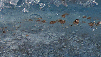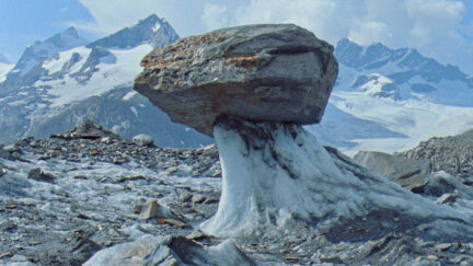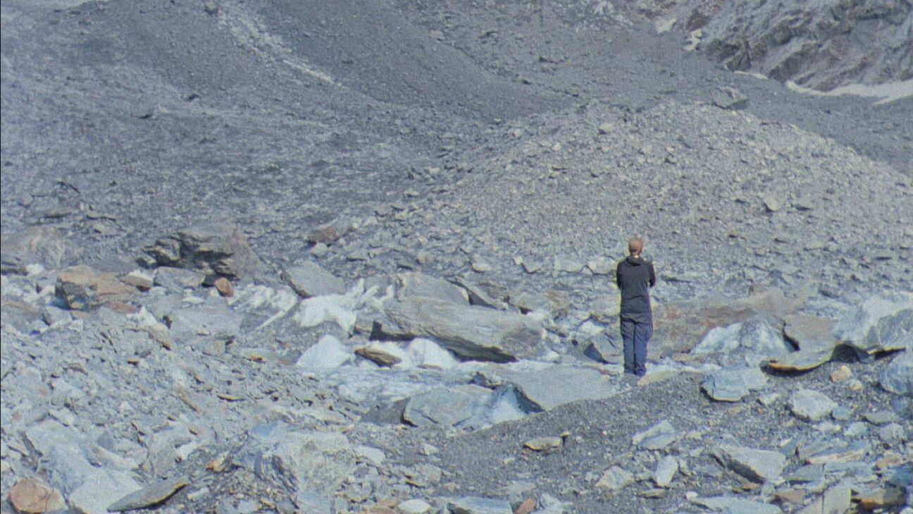 The eternal quiet of a mountain ridge is but a deception. Melting glaciers constantly change the surface and uncover old traces of human presence. Sounds of collapsing ice blocks under the weight of stones reveal the symptoms of an evident decrease, the porous border between ‘fiction’ and ‘reality’.