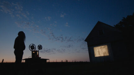 But the star of the film is Zahs, the man who saved that film from the incinerator. He loves to show the films using a projector set up on a banana box, or on the wall of his shed – whereby the man who so cherished these films, their extraordinary screening and everyday life in remote, rural Iowa are combined in a single stunning image.