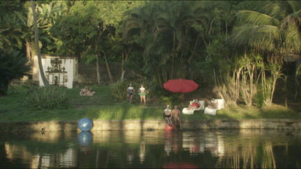While the country is under the yoke of a military junta and corrupt priests preach the apocalypse, a lawless, eccentric family – a kind of Bonnie & Clyde with kids – trek through the Brazilian interior. Their first aim is to deliver a consignment of weapons to a group of militant nuns who have withdrawn to the jungle, living off the income from their cannabis plantation. The Dadaist approach of poet, theatre and filmmaker Tavinho Teixera, who plays one of the leading roles alongside his daughter Mariah, results in a colourful collage in which political-philosophical reflections, strangulation sex, decadent drinking sprees and an ode to the power of tiger balsam are juxtaposed seamlessly. Background projections, psychedelic visual effects and an eclectic score evoke the experimental film culture of the 1970s, the era with which Sol alegria also shares its basic tone of cheerful nihilism.