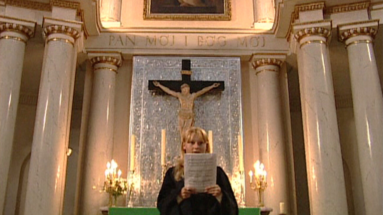 A group of deaf-mute students sings mass at a church in Warsaw. The students cannot hear themselves or each other, but music is music. -