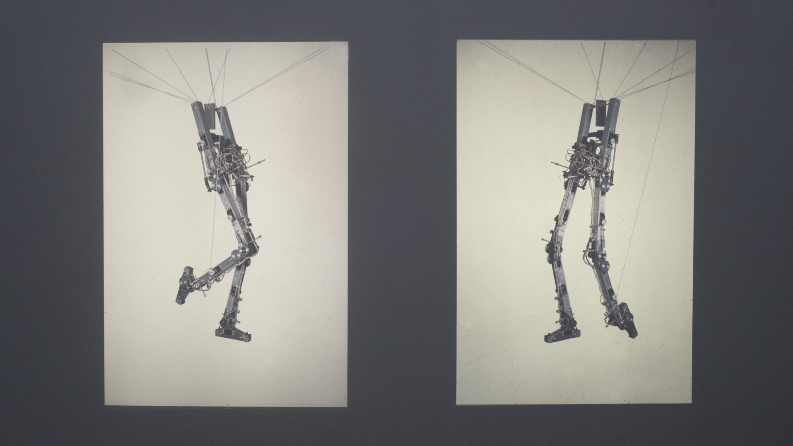Two projectors are animating robot legs. Driven by the zeros and ones of an Arduino, the sound of the projectors provides a mechanical rhythm for the dance. The images dance with each other and with the image source. Moved by the strings of an unseen puppetmaster, it leaves us with the question: who is in charge?