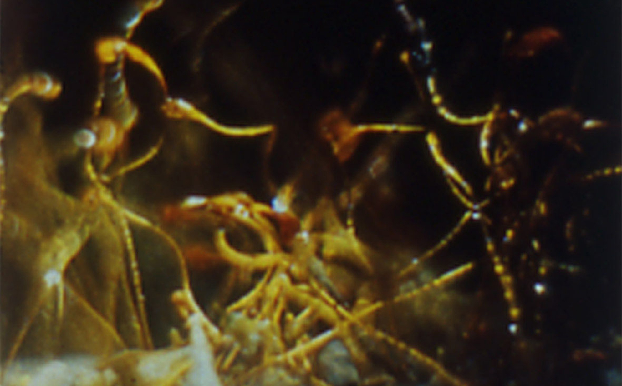 An encounter with a mysterious, luminous substance and the mythical star jelly. Coronal Kirlian photography joined with hand-processed images. -