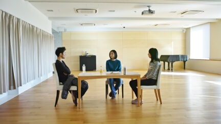 Aki and Nodoka are childhood friends who are drifting apart as adults. Immersed in her family life, Nodoka now has a husband and daughter; Aki, on the other hand, remains single and is on leave from work due to a personal crisis. The plot might sound familiar but it has never been told like this. The director Kusano Natsuka stages the interactions through an actors’ table-read and, as the lines are repeated, the scenes gradually develop into on-location conversations. Moreover, she repositions the dramatic peak of the story to the beginning: Aki has murdered Nodoka’s daughter.