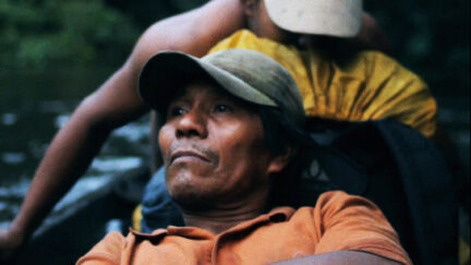 A narrator who witnessed the spectacular rise and fall of drug lords in the Colombian Amazon takes us on a labyrinthine journey. Clever montage of clips of original 16mm landscape imagery results in an uncanny ethnographic study of narco-capitalism and enduring pre-colonial relations.
