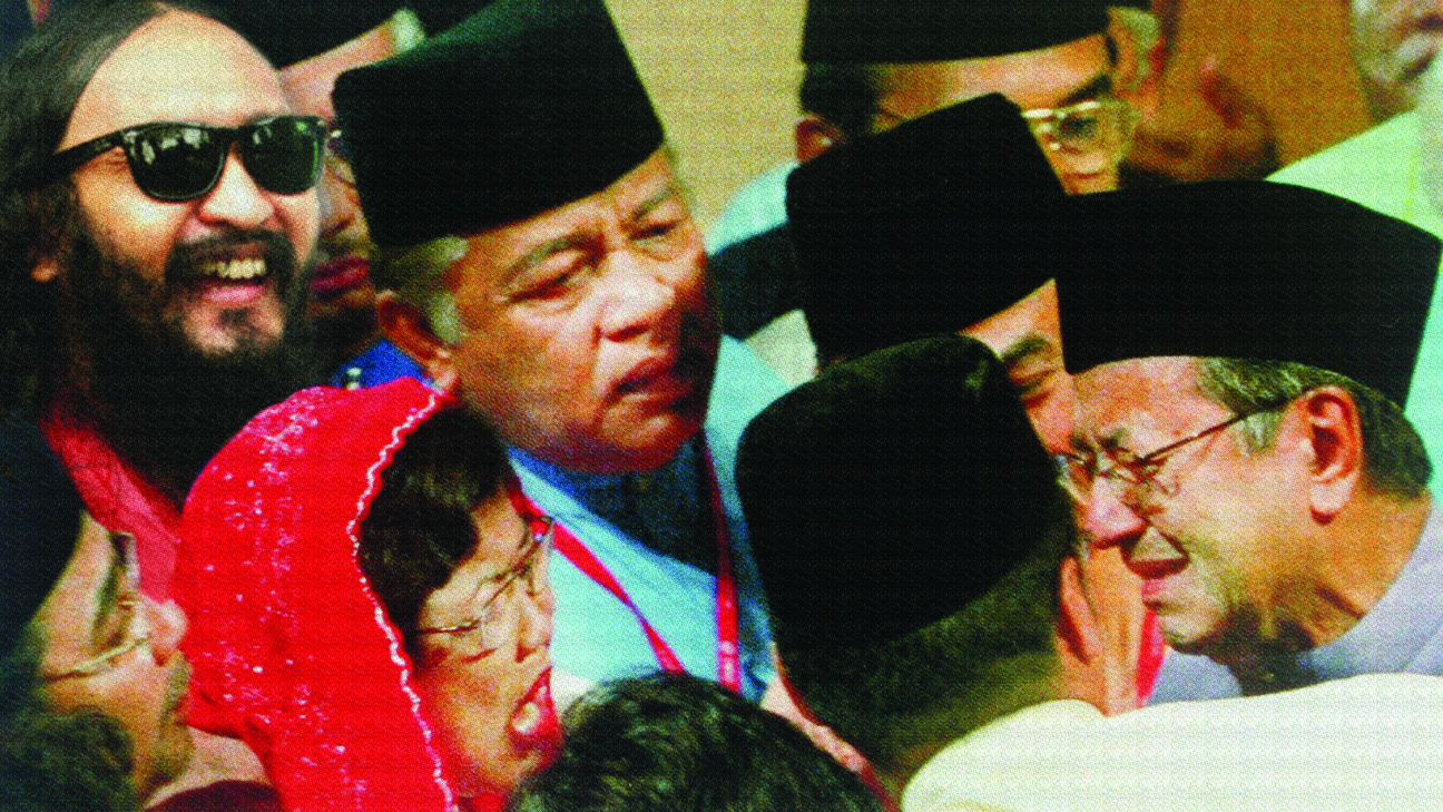 A present-day hippy finds his way into historical photographs that mark Malaysian history in this humorous slide installation. -