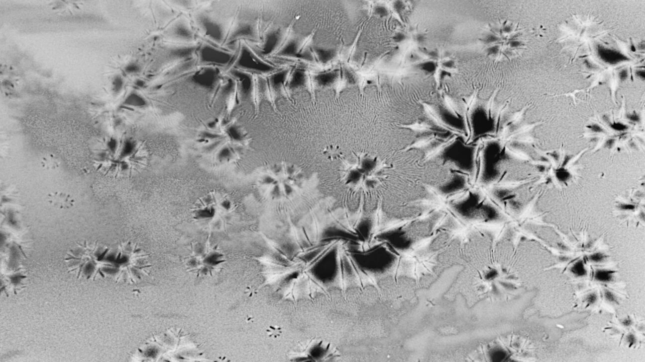 In Pareidolia, analog abstract patterns made on 16mm film are used as source material for finding similar figurative images, interpreted by an online search engine. Hundreds of these matching images were edited into abstract film clips, resulting in an exciting visual and psychological cinematic experience.