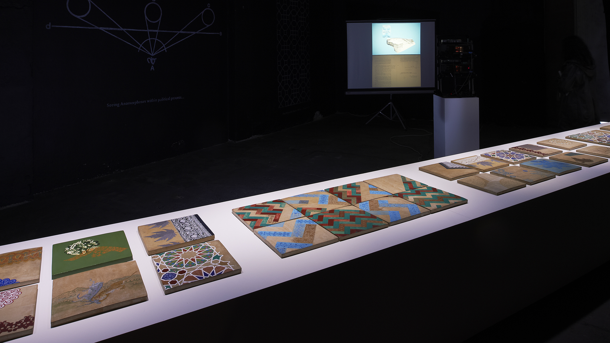 Kashmir is India’s northernmost state and, since 1947 (the year the subcontinent rid itself of British rule), the site of a separatist movement. In an installation that involves dual slide-projection, papier mâché tiles and wall drawings, Praneet Soi eschews media representations of Kashmir and opts for the generation of a personal narrative.