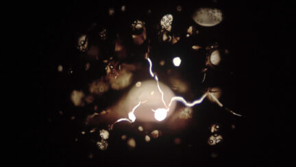 Expanded cinema performance with two modified 16mm-projectors that reduce the essence of film and projection to the bare minimum: no image, sound or narrative. From frame to frame, the filmmaker balances on the edge in an improvisation comprised of light, dark and focus, with the film emulsion at a constant boiling point.