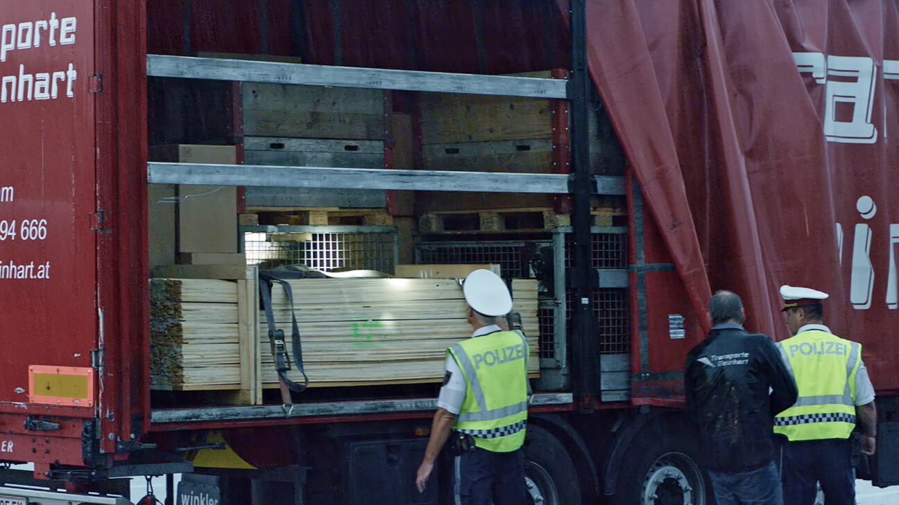 Zimmermann’s documentary is one long cinematographic tour de force, including 13 panoramic shots with the camera spinning on its axis and exacting tracking shots that focus our attention on warehouses, goods trains, border crossings, petrol stations, trucks and container ships. The stack of planks has since returned to Europe, to be exhibited in Admont and in museums and galleries, as a silent witness to a bizarre journey.