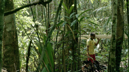 In virtuoso, fluid images that rotate through 360 degrees, Zimmermann reveals the absurd journey of a stack of planks. It all starts in the woods around the Admont monastery in Austria, where a pine tree is felled and sawn into planks. The stack travels to the heart of the Brazilian rain forest by train, truck and boat. The planks take the main trade routes for raw materials in reverse. Walden reveals the absurdity of one of the economic principles defining our globalised world.