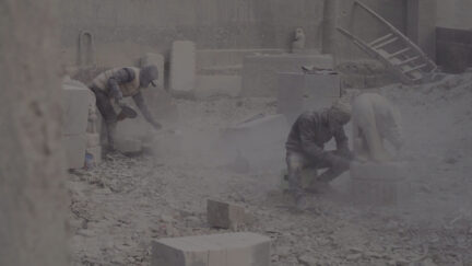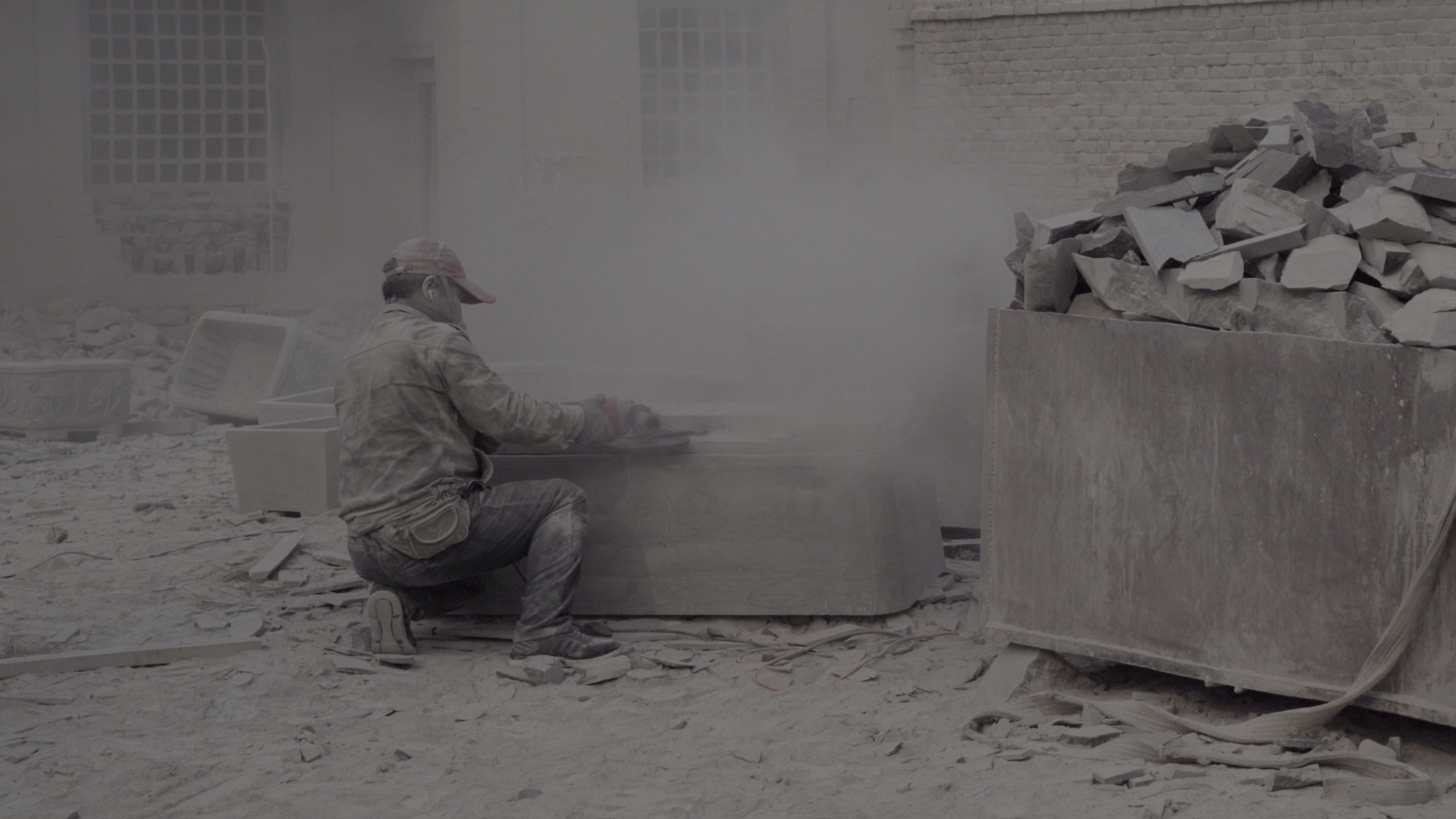 Man shapes his environment, which shapes his brain. Two hundred kilometres from Beijing, men live in a stone quarry amidst rocks that are waiting to be hacked, cut and sanded into sculptures. The same gestures come back again and again, to write a history of deterioration and repair. In the making of monuments, history is obliterated.