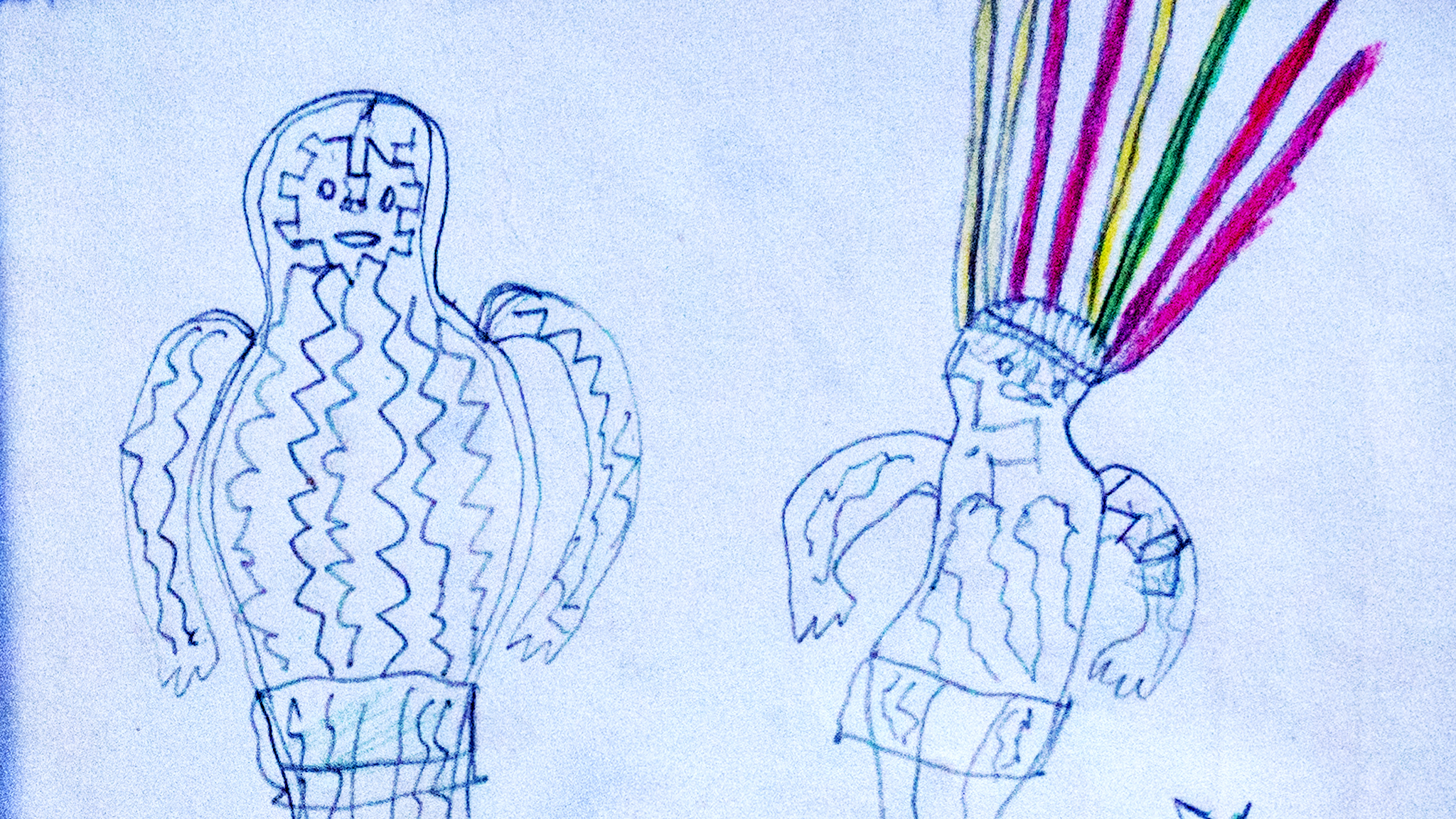 This cinematographic portrait has its origins in Brazilian educator and indigenous rights militant Egydio Schwade’s archive found in his home at Presidente Figueiredo (Amazonas), where over 3,000 drawings made during their first literacy process by the Waimiri-Atroari, a people native to the Brazilian Amazon, are currently kept. The drawings document and construct a collective visual memory from their learning process, perspective and territory, while attesting to a series of violent attacks they were submitted to during the military dictatorship in Brazil.
