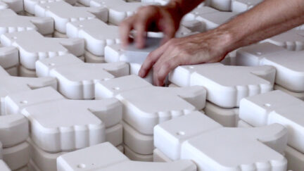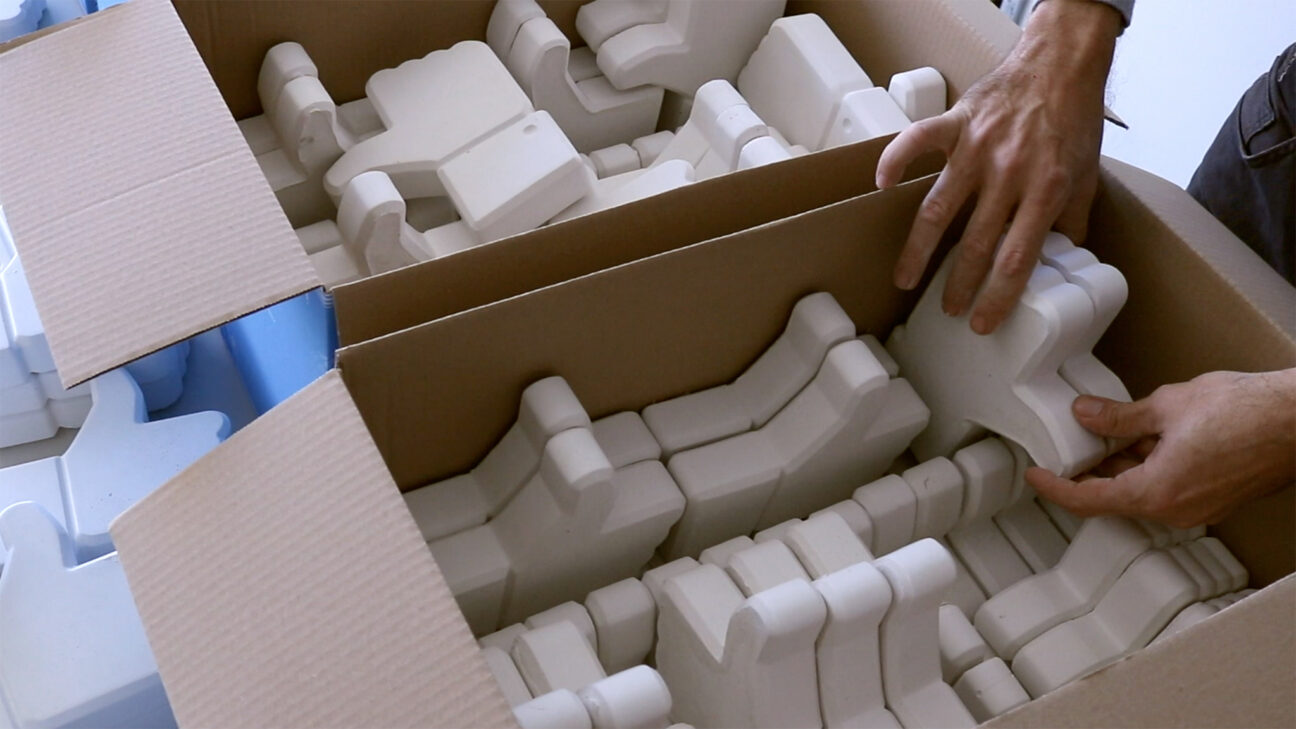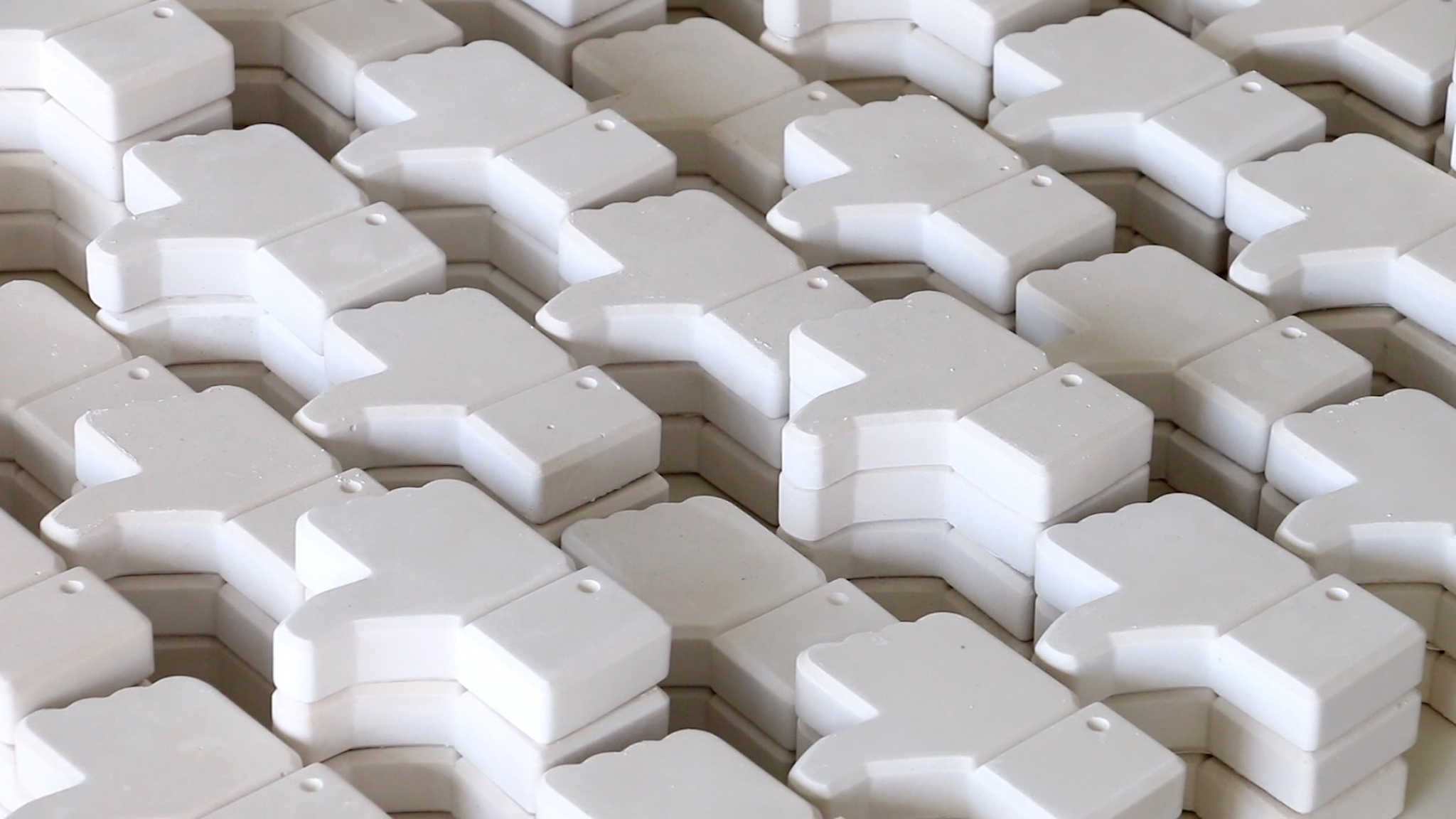 Engagement Rate Formula is a video in which Melis proposes a serial production of social media ‘Like’ icons made out of plaster material. Once the 500 Likes have been reached, they are packed in boxes to be sent by post to the Moira refugee camp on the island of Lesbos, Greece.
