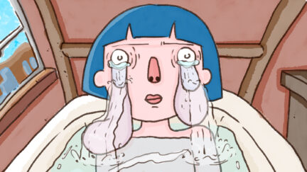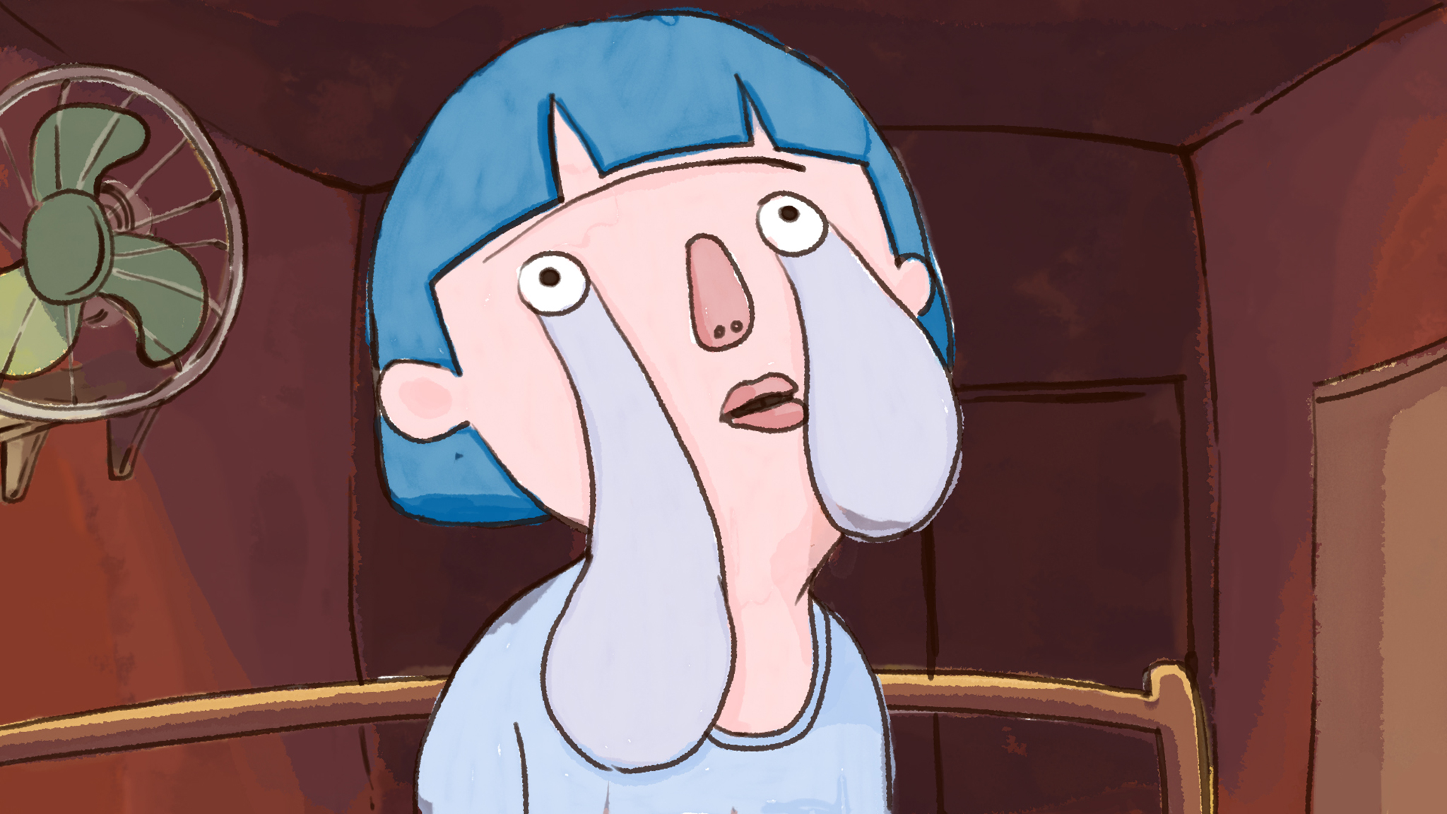 An insomniac young woman discovers that the particularly large bags under her eyes have become an attractive home for A Gum, a goldfish with a thing for Brad Pitt.