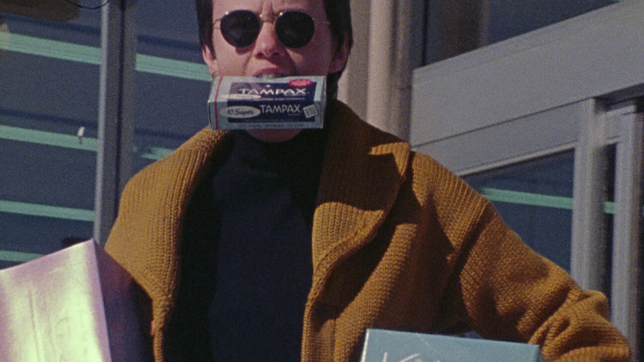 A wry comedy on the ironic aspects of menstruation. Women act out their own dramas, in a red-filtered ritual of mutual bonding. In her work from the 1970s, Hammer based her aesthetic on connecting sight and touch. Tactile imagery would make viewers physically involved while watching, leading to greater involvement in the work.