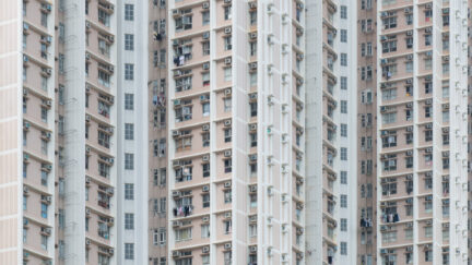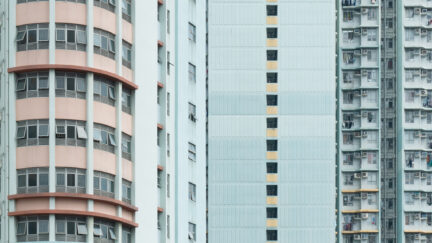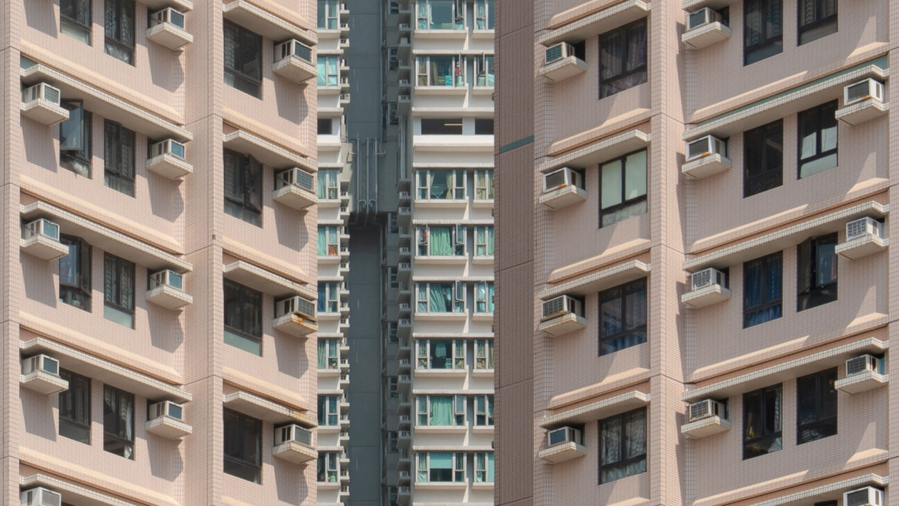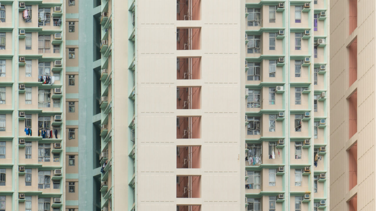 Hong Kong’s distinctively shaped housing blocks form mesmerizing patterns that appear to move and shimmer in this dazzling, subliminally subversive dance of images.