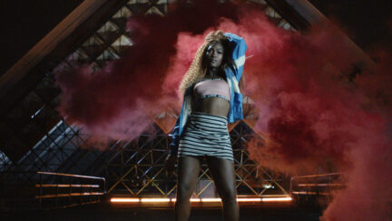 Things become heated between rival groups of dancers in the swirling Swinguerra, a play on words with the dance swingueira and the word guerra (war). The dancers are generally non-binary – an implicit commentary on the repression under Bolsonaro. Submitted to the Venice Biennale.