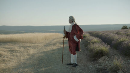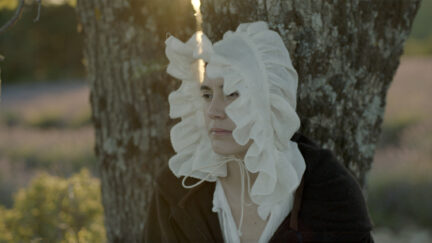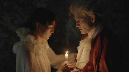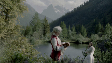 Rampant debt and a significant midlife crisis send philosopher Edmund Burke (Antony Langdon) fleeing from London to embark on an expedition through the French Alps. He brings along a servant on loan from his brother’s plantation in the West Indies, a young indigenous woman named Awak (Nathalia Acevedo from Post Tenebras Lux). Together they set out to discover the sublime in this 18th-century road movie. Ill-equipped for the outdoor life, Burke whinges the days away while Awak carries all their supplies and makes sure his face is perpetually powdered.