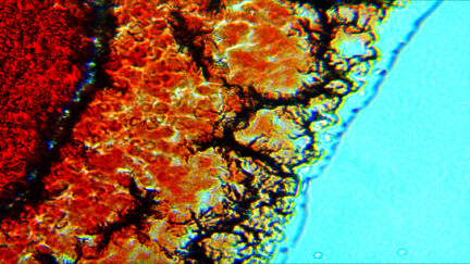 and microscopic images of decaying bodily matter; footage was shot in