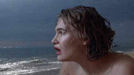 In Phoenix there are no fixed categories, either in relation to sexual orientation or film style: fluidity is the norm. The main character, for example, is bisexual; and his short-haired female visitor looks pretty androgynous. The film’s style is equally fluid, with some passages in monochrome shades, black and white and a pastiche of 1980s video clips. At times Phoenix becomes a silent film, with intertitles or script notes appearing on screen. The man in the story is referred to as 1, the woman as 2. In addition, the film features a lot new-wave style music, much of which was composed by director/polymath Bram Droulers.