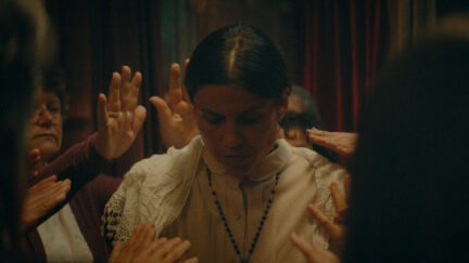 She regularly functions as the unwilling focal point of religious services, with which doña Fresia – who also has Clara’s niece Maria under her protection – augments the household’s income. A second source of money is the white mare, Yuca, which is rented to a tourist organisation. Clara’s deep connection to nature is portrayed with a hint of mystery and accompanied by a dark, dreamy score. A new animal caretaker brings out long-repressed feelings.