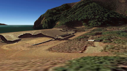 Tijana Petrovic explores the close interaction between landscape and technology, focusing on the military fortifications built on the coast of San Francisco Bay. Carefully tracking the advances in relation to power and vision, the camera wanders around the preserved constructions of a bygone era while the image is inundated by a perpetual fog. Visually striking and employing an essayistic approach, the film contrasts the slowly eroding landscape with the rapid obsolescence of wartime developments.