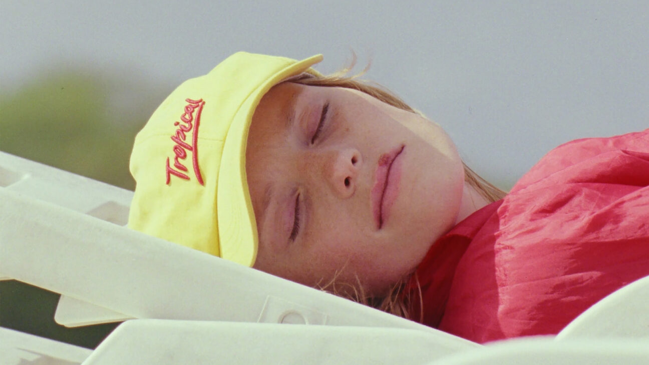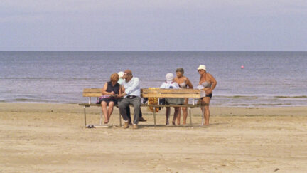 A social contradiction is encapsulated in the opening image: a woman sunbathing on a rooftop is revealed to be located, incongruously, right above a busy office in Riga. Then the action shifts to a beach, where the same tension is evident: work is repetitive and unglamorous, while a self-help audio promises peace and contentment.