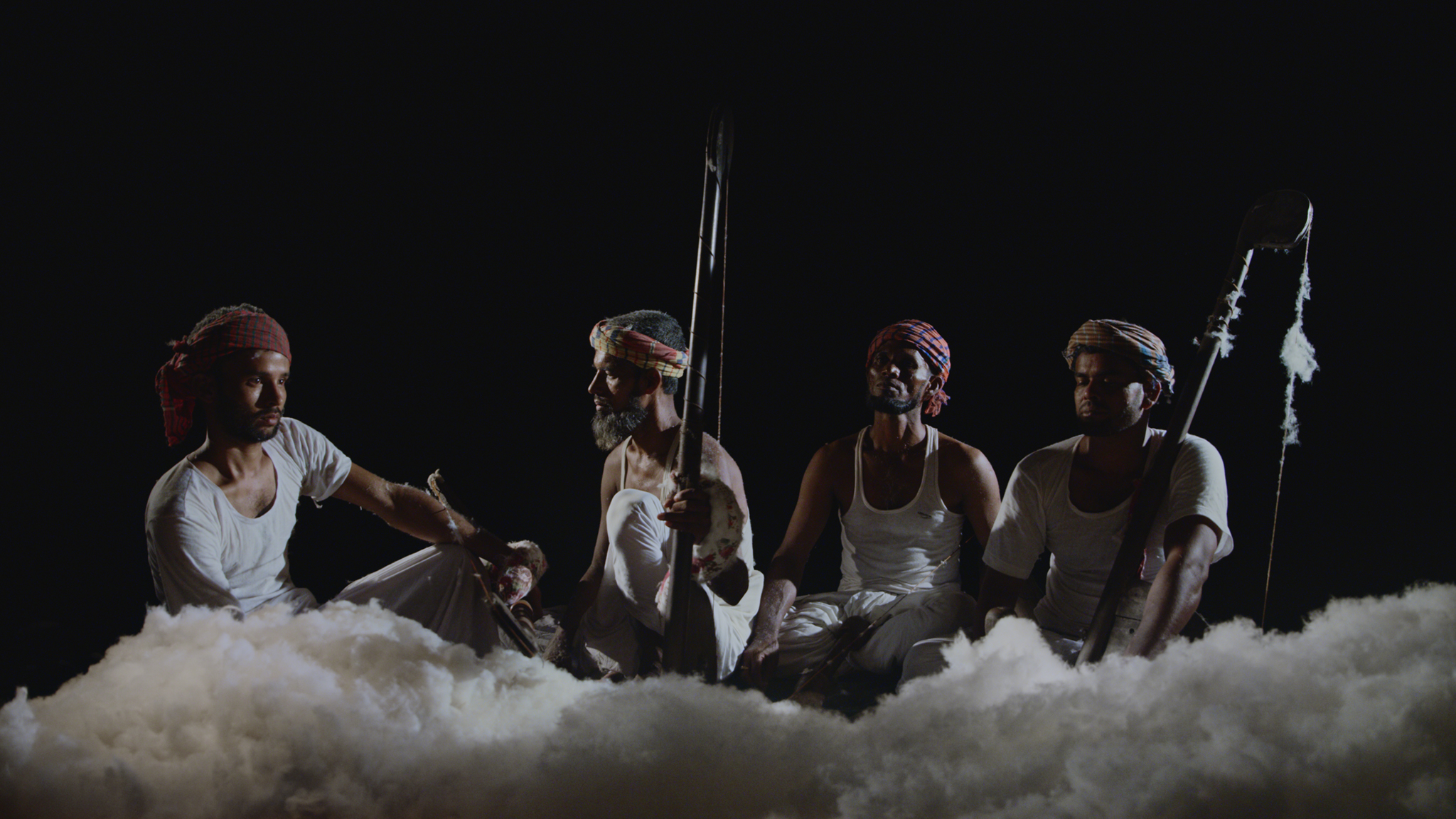 In Shabnam, the fragmented history of the fabrication of muslin and its scattered documentation across archives all over the world is stitched back together in a piece that is as stunning as it is confrontational. The result is a patchwork of uneasy encounters, hidden narratives and archival images, in which the discomfort of inequality is made tangible to the viewer.