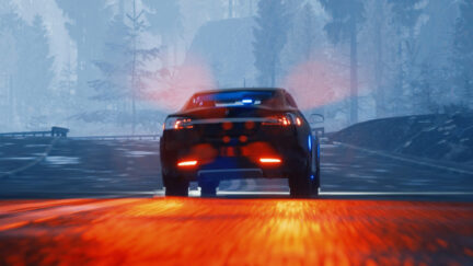 This CGI animation follows a self-driving police car in a desolate landscape. In dialogue with a built-in therapist, they contemplate the meaning of freedom and lament their uselessness. As their conversation ensues, it becomes increasingly clear in what kind of world our protagonist is living. Theta is part of Lawrence Lek’s Sinofuturist cinematic universe, in which he explores the psychological impact of technology on emerging forms of non-human life.