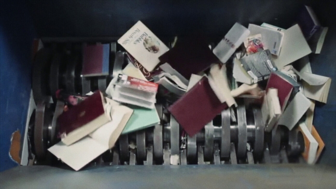Propelled by terse, dialectical montage, Överföringsdiagram Nr 1 invokes the process of knowledge production through acts of both destruction and restoration. Images of a machine shredding books are interspersed with archival material from a Maoist life and animated sequences representing the reconstitution of destroyed DDR documents. Lina Selander and Oscar Mangione craft a stark, densely structured essay shot through with a sense of political disillusionment, but rich with secondary associations.