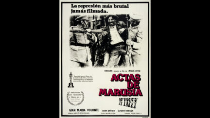 The lone individual to stand out is Gregorio, a labour activist played by Gian Maria Volonté. This casting was an obvious point of reference for Littin, Volonté was a communist and the most famous face of Italy’s popular political cinema. Another iconic name found among the crew is Mikis Theodorakis who wrote the music for the film – it evokes the Mexican Revolution-sound of Italian Westerns.
