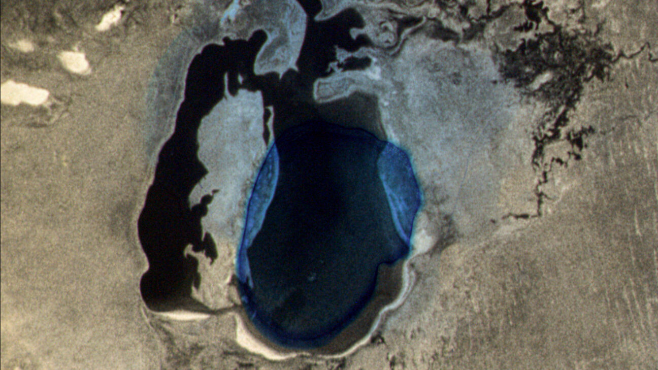 As one of the most striking examples of human-caused climate catastrophe, the Sea of Aral is gradually running dry. Various hand-processing techniques overlay a time-lapse of this slow demise as the erosion and cracking of the emulsion mirrors that of the landscape. The soundtrack is inspired by the original score composed by John D. H. Greenwood for Man of Aran (Robert J. Flaherty, 1934).