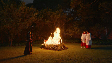 This outrageous comedy stages a soap opera of epic proportions, as one corrupt property developer faces trial for Mexico’s violent history. The fourth feature from Santiago Mohar Volkow, Una historia de amor y guerra centres on real estate baron Pepe Sánchez-Campo, whose mega-mall development brings him into conflict with local guerrillas. For once, bribery and a call to Daddy might not be enough to save Pepe – a character more grotesque than the telenovela unfolding around him. Trying to sabotage Pepe’s marriage to Constanza, her cousin and lover Teo records Pepe cheating. The resulting chaos precipitates in a burlesque bloodbath involving treachery, talking animals, colonial history and bartering in the afterlife.