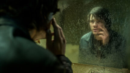 Gans’ film is a triumph of world-building. The ash-soaked atmosphere and nearly monochrome colour palette push the visual field to the edge of abstraction, amplifying the dread that lies waiting. The painstaking production design offers an immersive experience of being lost in a town consumed by catastrophe. Equally striking is the imaginative creature conception that ranges from crustaceans with embryo-like undersides to zombie-nurses.