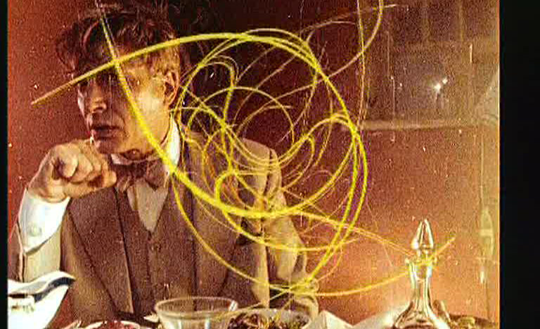 An expanded cinema performance in which – apart from the flicker and direct contact with the celluloid – very little of the original survives. -