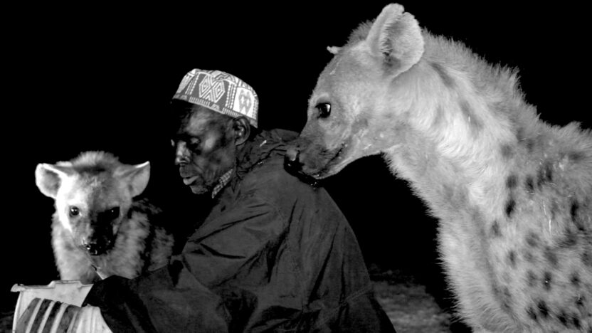 At night, outside the walls of the Ethiopian city of Harar, Yussuf Mume Saleh gets together with a group of spotted hyenas. -
