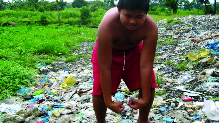 Piling plays soccer with a tin can through the slums of Manila. A new Maradona? -