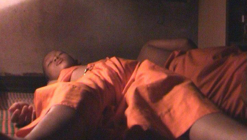 In hectic Bangkok, a little monk reads the holy scriptures. Outside, chaos reigns. -