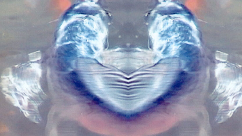 Pictures from a black and white documentary about the life in fresh water, recomposed on the celluloid ribbon by an image by image collage to…