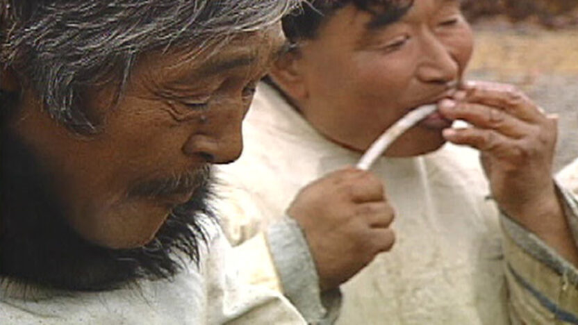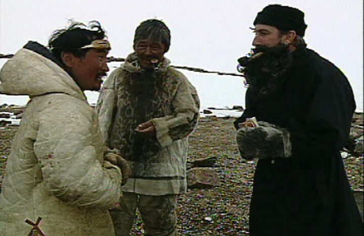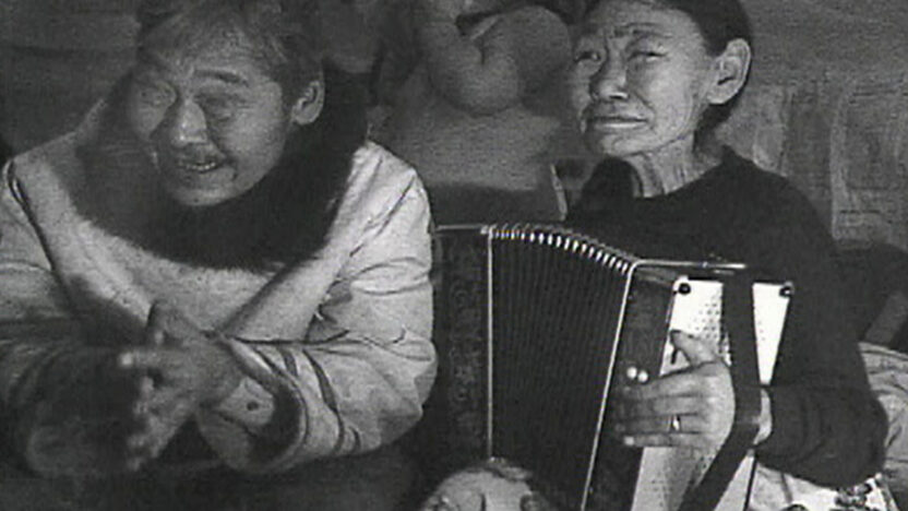 Kunuk drags the viewer along into a world where time fades, past and present flow into one. The construction of a communal igloo, dancing, music-makin -