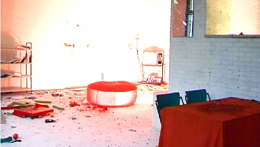 The action takes place in a space like a living room in which various elements are shaken awake.