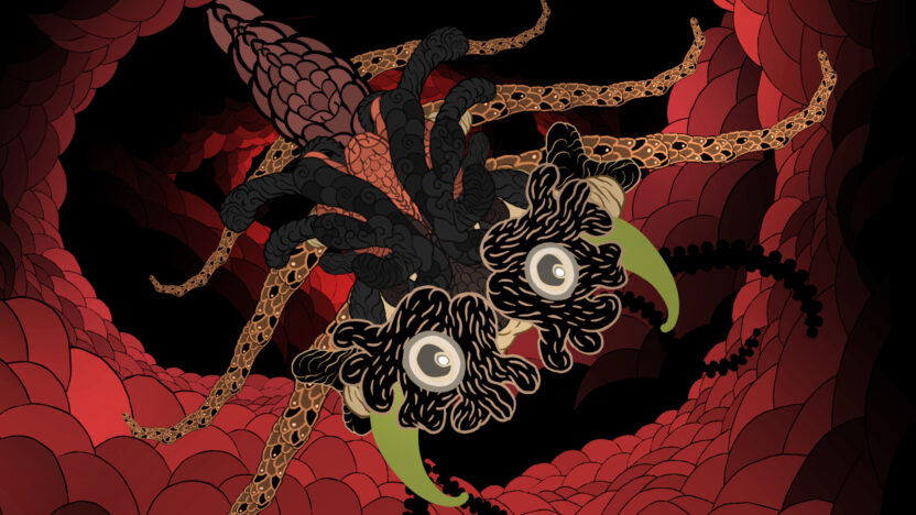 Colourful and beautifully designed primeval-soup animation in which a bizarre creature undergoes a metamorphosis in a pre-earthly universe.